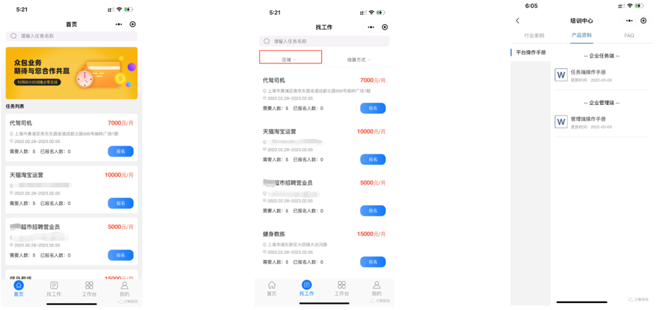 企業(yè)線上發(fā)布崗位需求,信息直達(dá)平臺(tái)用工資源儲(chǔ)備及各地人才市場(chǎng)、招聘中心等觸角,高效對(duì)接基礎(chǔ)密集型崗位周期性用工供需。